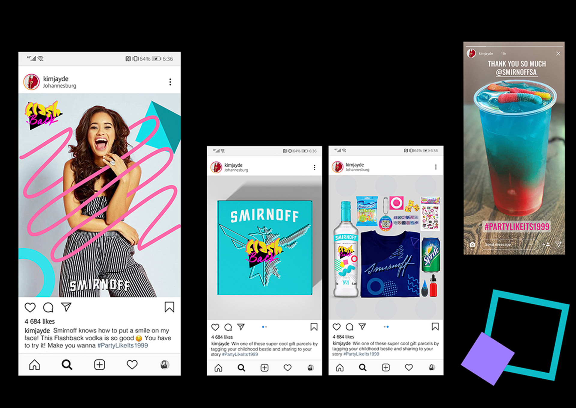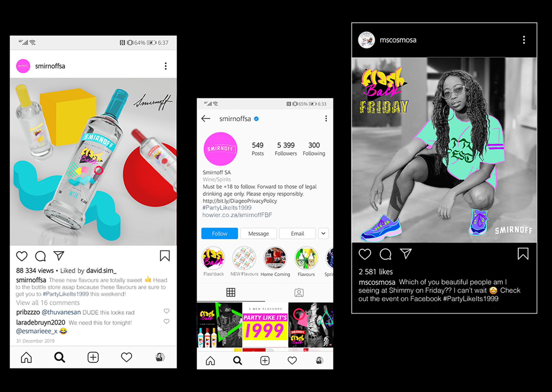 The Smirnoff Flashback campaign leveraged social media platforms to build excitement around the product launch and immersive events. Engaging posts urged followers to try the new candy-infused vodka range and provided event details for the Flashback Friday launch party, with support from radio personality Ms. Cosmo. Pre-launch Instagram promotions featured influencers like Kim Jayde, who received nostalgic-themed parcels containing the product and cocktail ingredients. They shared creative posts and stories showcasing the brand, while also hosting product giveaways to drive audience engagement and awareness. This multi-channel approach fostered buzz and built meaningful brand connections.